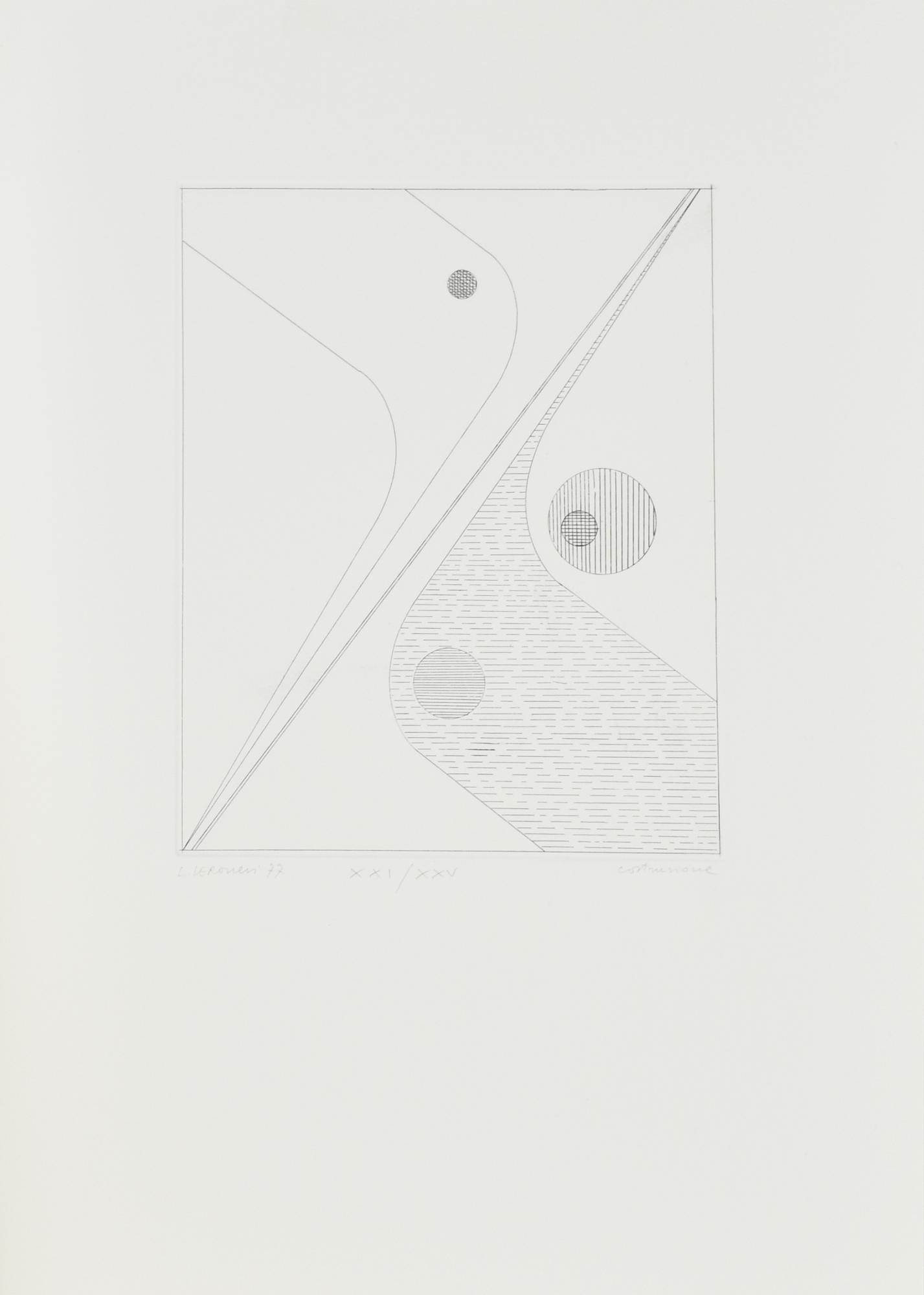 - Luigi Veronesi, Costruzione, acquaforte su carta, battuta cm 24x19, foglio cm 50x35