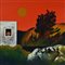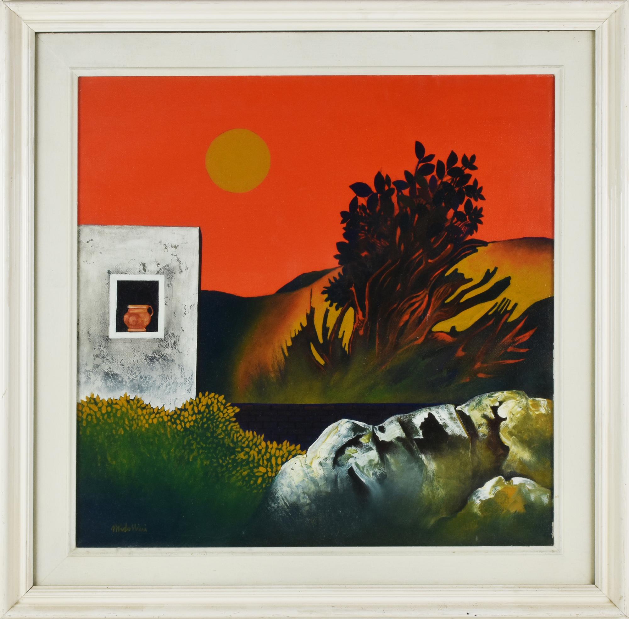 Sirio Midollini TRAMONTO CON FINESTRA tecnica mista su tela, cm 50x50 firma...