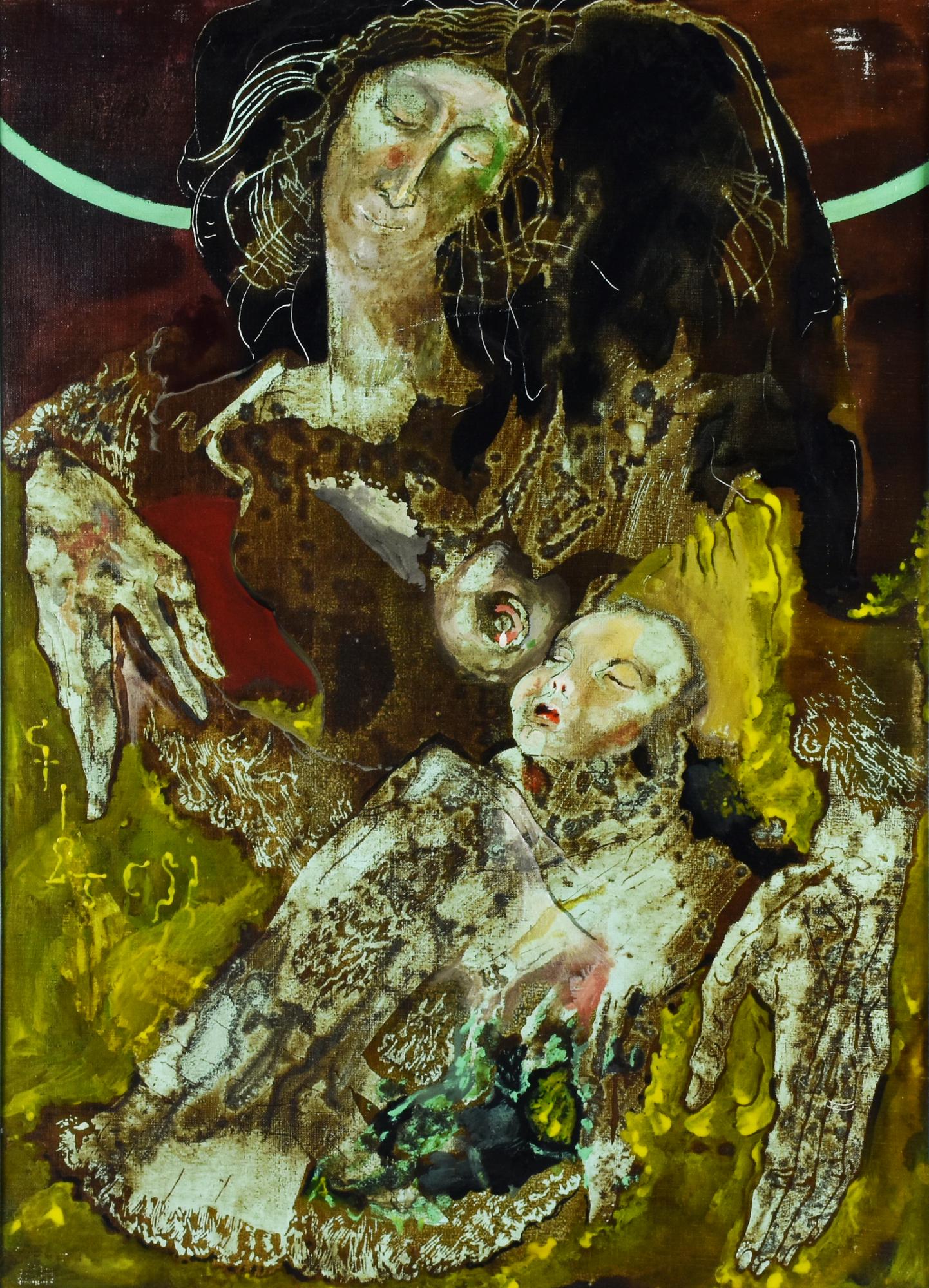 Lotto 441 | Giannetto Fieschi MADRE CON BAMBINO acrilico su tela, cm 70x50 firma