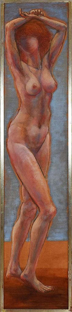 Leddi Piero RAGAZZA tecnica mista su tavola, cm 157x30 firma sul retro:...
