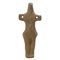 Figura femminile stilizzata, stante in posizione frontale con le braccia aperte e ventre rigonfio, decorata con cerchi impressi, probabilmente una dea della fertilità