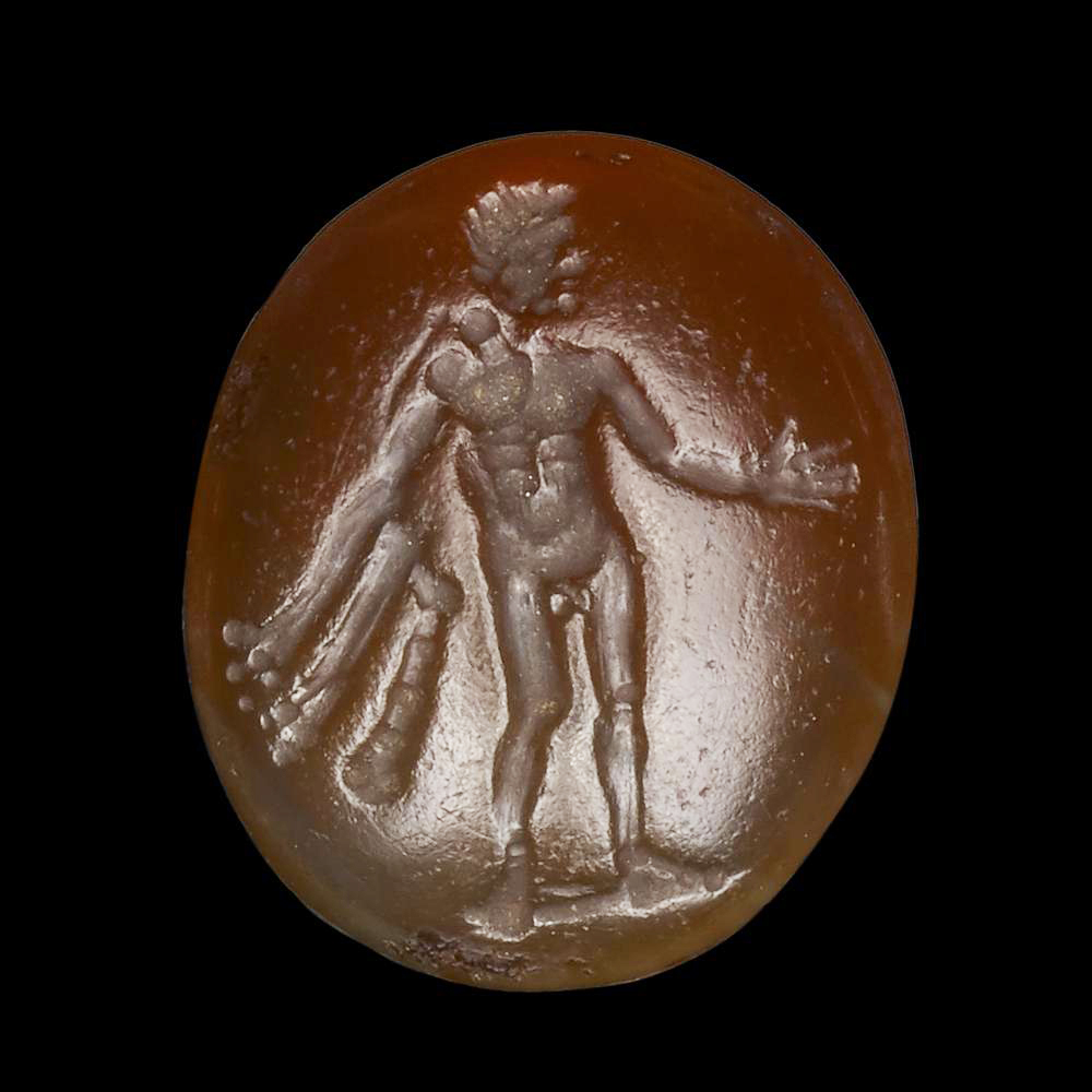 Castone ellittico inciso con Eracle nudo stante a sinistra con in mano la clava e la leonté che pende sul braccio