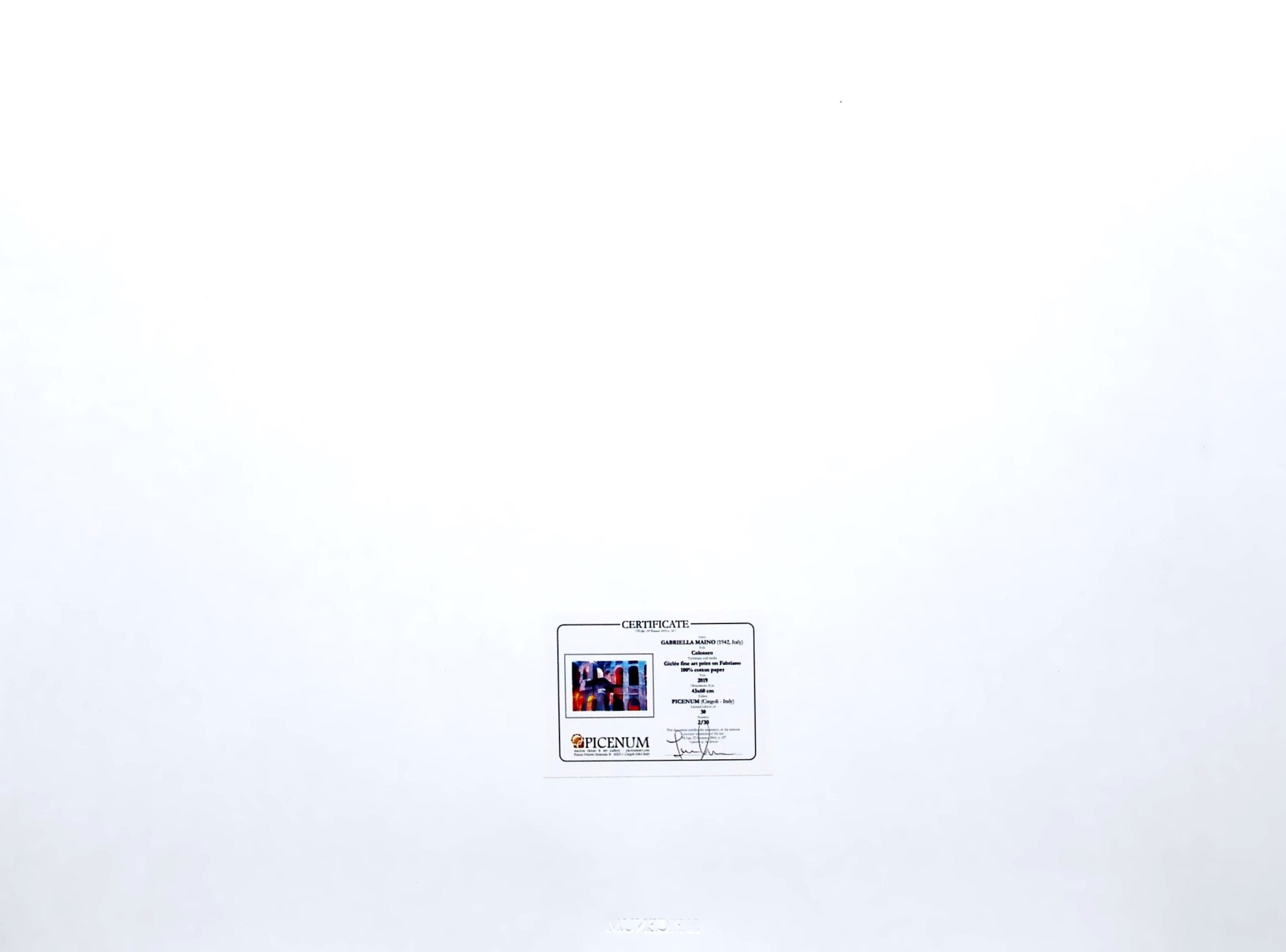 certificato di autenticità e timbro a secco dell'editore Picenum