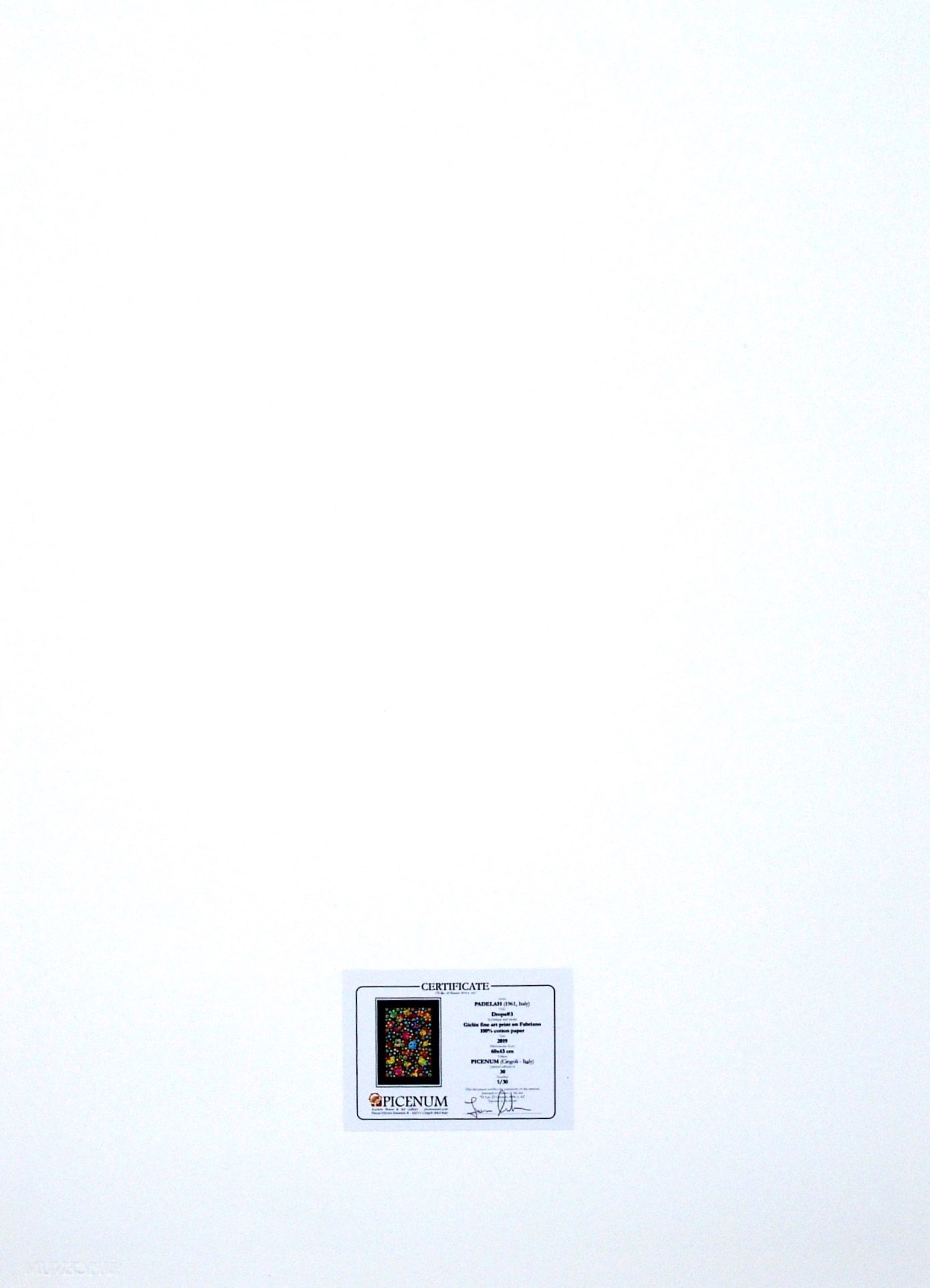 certificato di autenticità e timbro a secco dell'editore Picenum