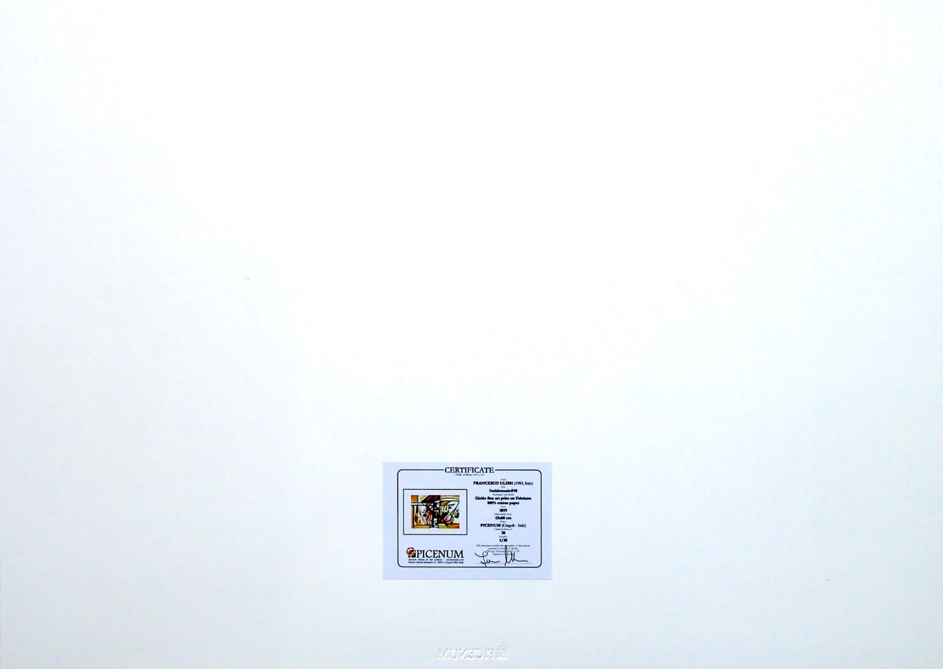 certificato di autenticità e timbro a secco dell'editore Picenum