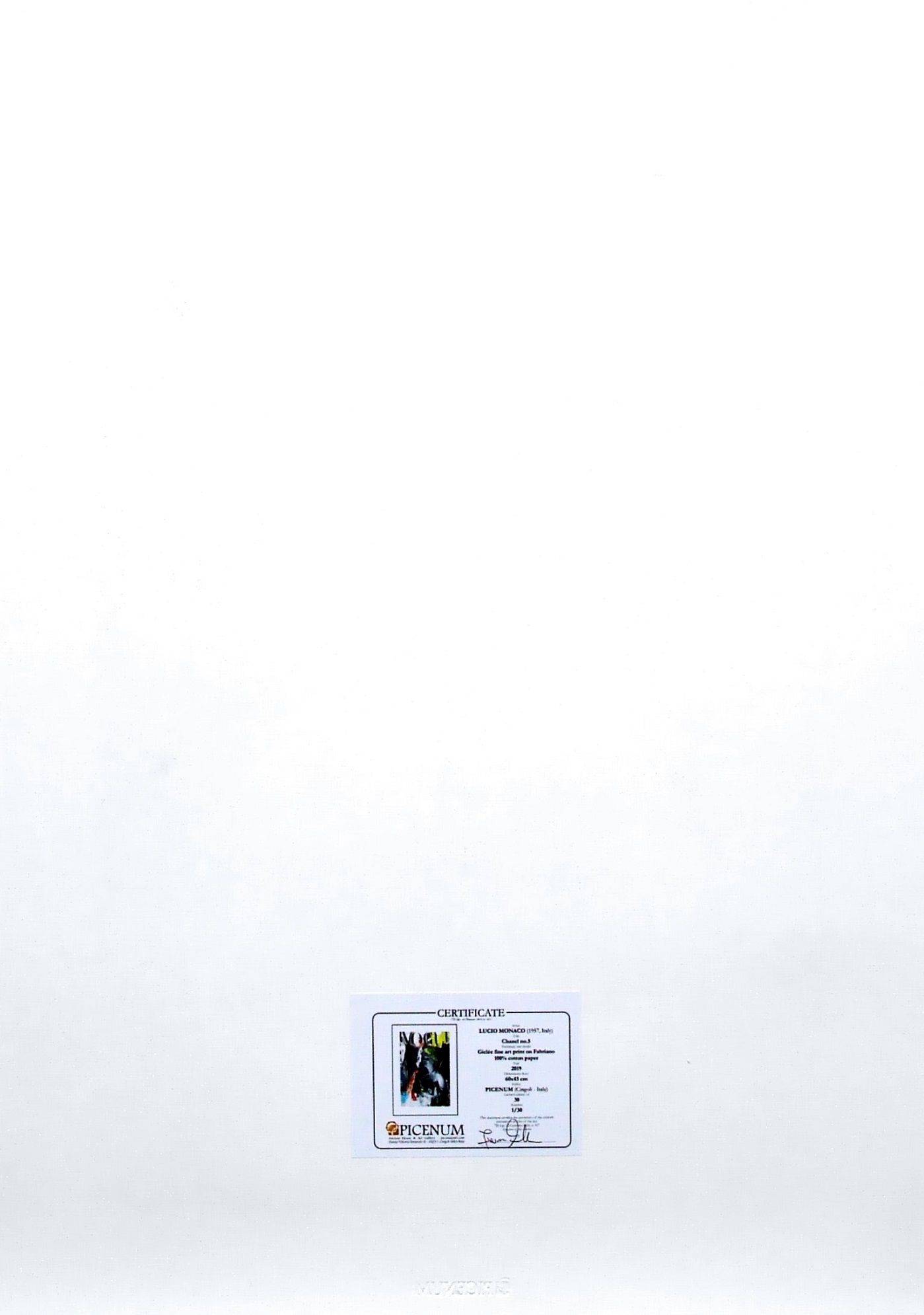 certificato di autenticità e timbro a secco dell'editore Picenum