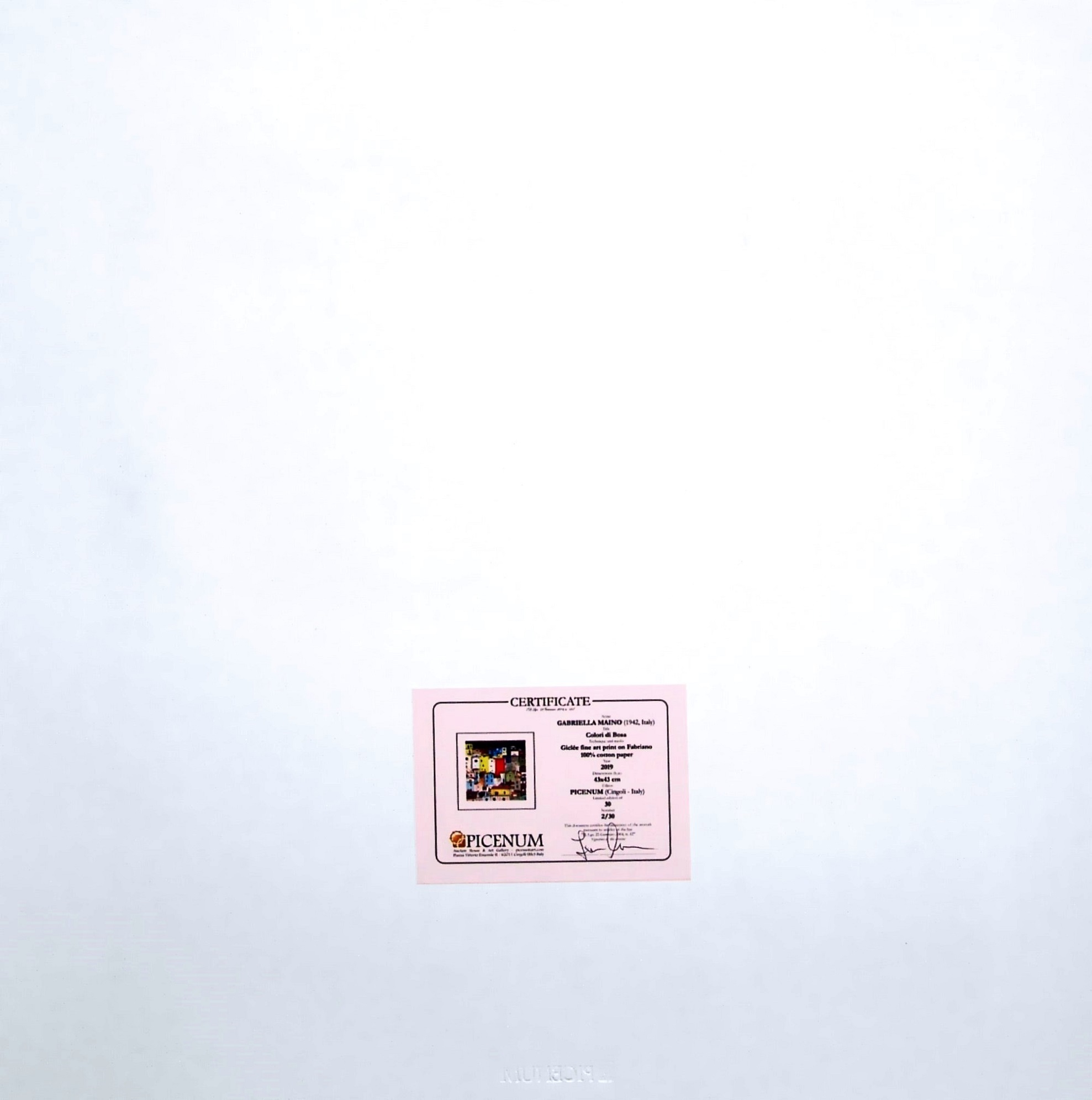 certificato di autenticità e timbro a secco dell'editore Picenum