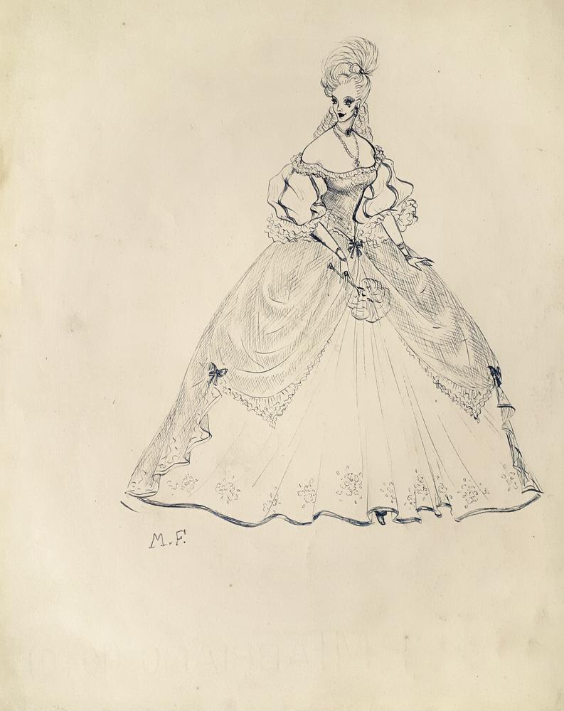 Lotto 48 | Ignoto STUDIO PER ABITO FEMMINILE matita e china su carta, cm 23x18 sigla...