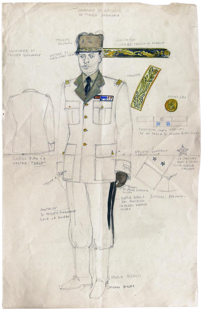 Anonimo STUDIO PER DIVISA MILITARE tecnica mista su carta, cm 43x27,5