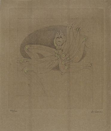 Hans Bellmer (Kattowicz, 1902 - Parigi, 1975) Les marionnettes Acquaforte, mm. 300x280 (lastra), mm. 397x330 (foglio); es. 149/150 Firma in basso a destra. Tiratura in basso a sinistra.