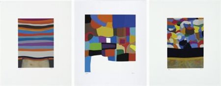 Alberto Burri (Città Di Castello, 1915 - Nizza, 1995) Trittico, 1973-1976 Serigrafia, cm. 43x35, es. X/XV. Serie di 3 serigrafie, Carta Fabriano Rosaspina. Firmate in basso a destra, indicazione della tiratura in basso a sinistra. Tiratura da 1/90 a 90/90 e 15 numeri romani da I/XV a XV/XV, Stamperia 2RC, Roma. Bibliografia: Burri Grafica Opera Completa, a cura di C. Sarteanesi, testo di M. Calvesi, Fondazione Palazzo Albizzini – Collezione Burri, Petruzzi Editore, Città di Castello, 2003, p. 94
