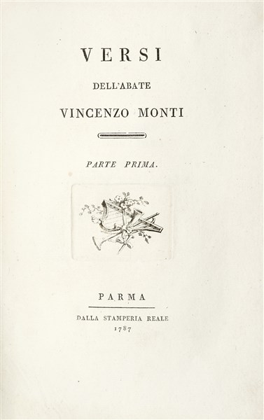 MONTI, Vincenzo (1754-1829) - Versi. Parma: Giambattista Bodoni, 1787.
