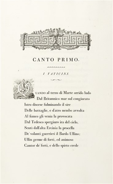 MONTI, Vincenzo (1754-1828) - Il Bardo della Selva Nera. Parte prima. Parma: Giambattista Bodoni, 1806.