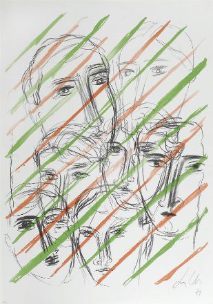 Sandro Chia (Firenze, 1946) Volti, 1989 Litografia, mm. 696x495; es. P.A. Firma e data in basso a destra. Tiratura in basso a sinistra.