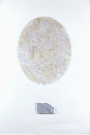 Omar Galliani (Montecchio Emilia, 1953) Senza titolo Serigrafia su cartone telato e applicazione in marmo su carta, mm. 1000x715; es. 41/75 Firma in basso a destra, tiratura in basso a sinistra.