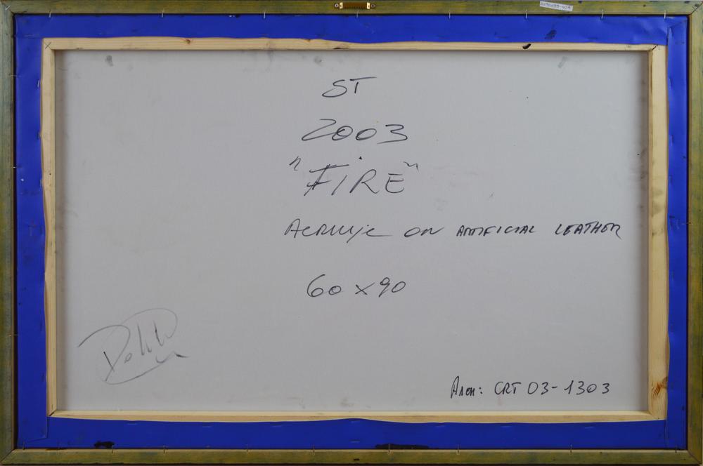 Dalila Crotti FIRE acrilico su pelle artificiale, cm 60x90 sul retro: firma e...
