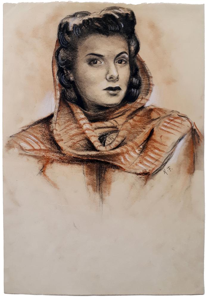 Ignoto RITRATTO FEMMINILE tecnica mista su carta, cm 30x20 sigla eseguita...