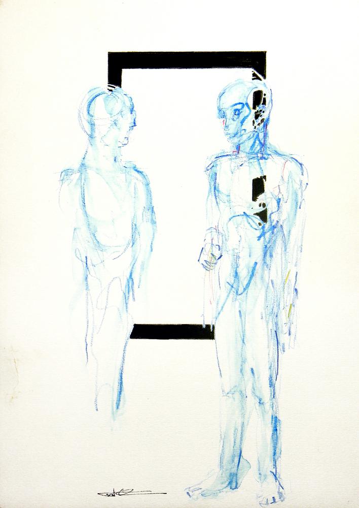Cristiano Quagliozzi FIGURE tecnica mista su carta, cm 36x25 firmato sul...