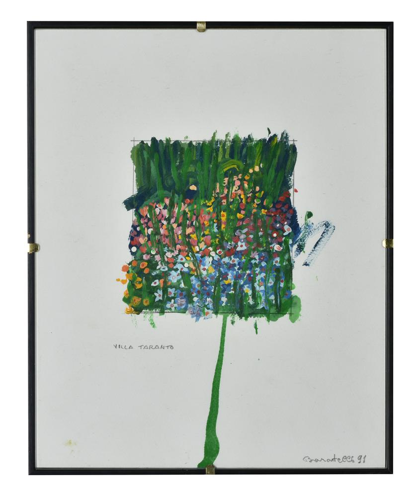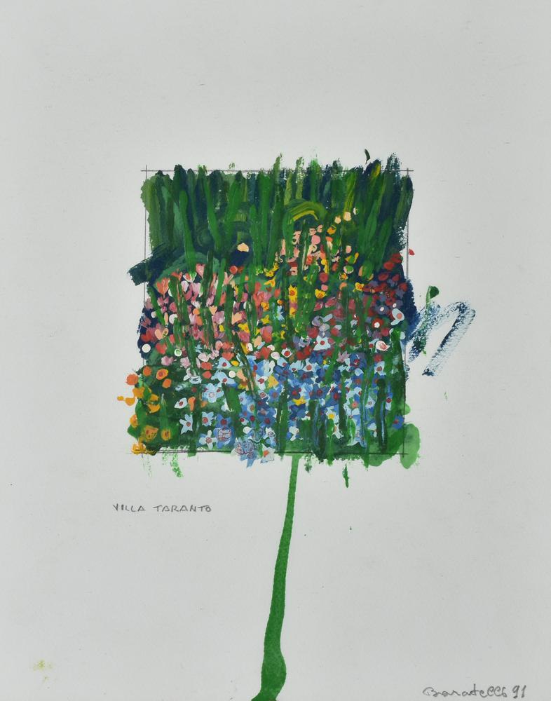 Baratelli VILLA TARANTO tecnica mista su carta, cm 30x24 sul fronte: firma,...