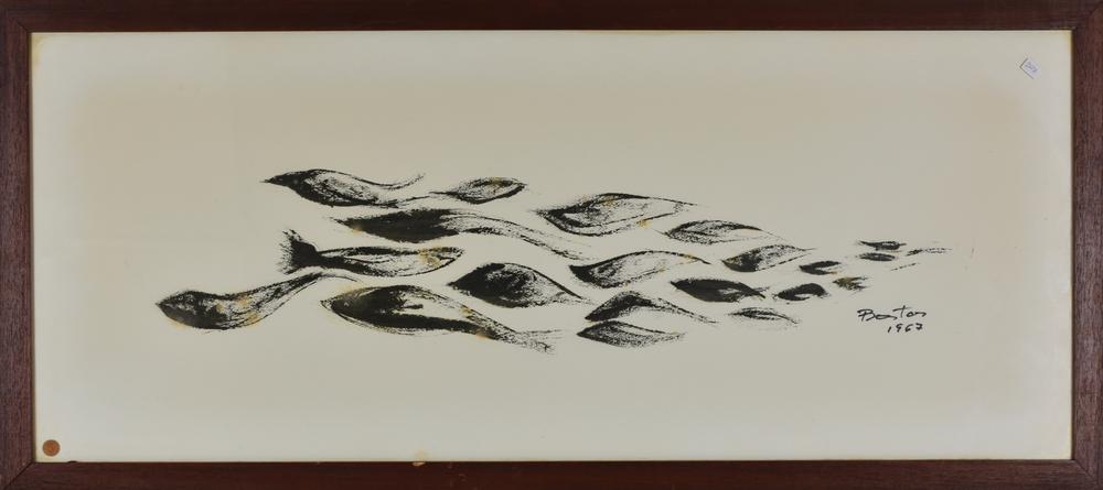 Lotto 28 | Bastos PESCI olio su carta, cm 34x83 sul fronte: firma e data eseguito nel...