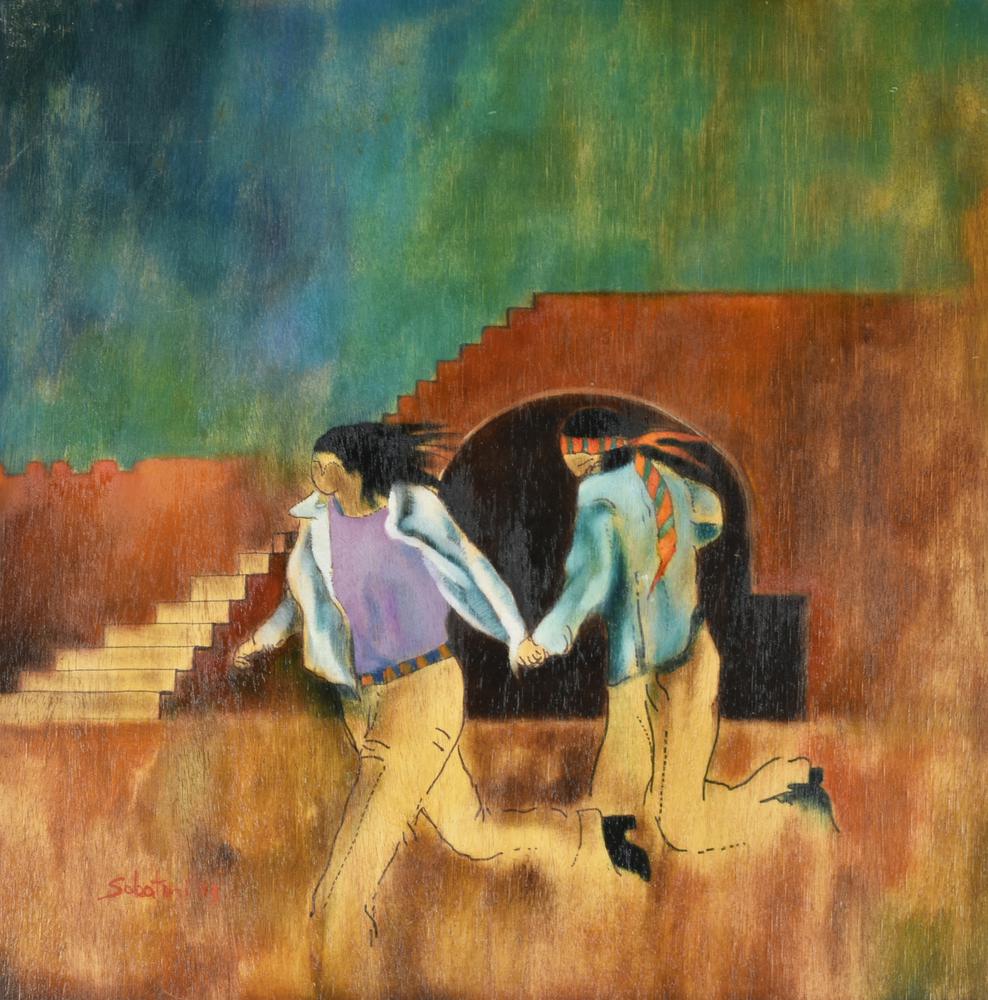 Lotto 30 | Piero Sabatini A MOSCA CIECA olio su tavola, cm 50x50 sul fronte: firma e...