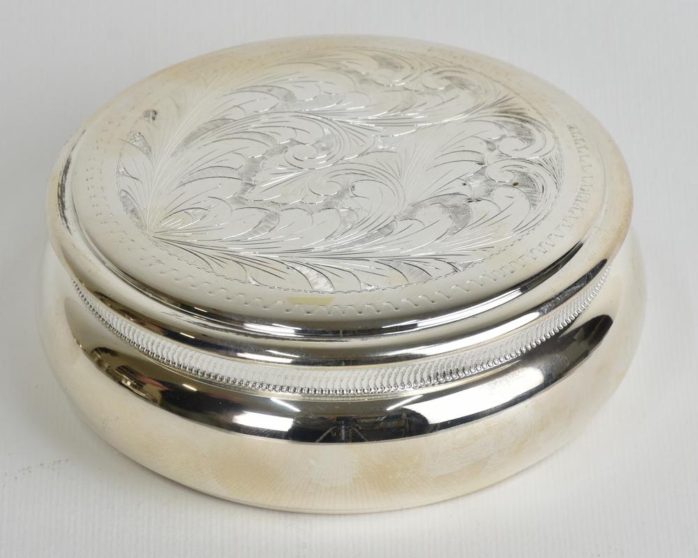 Lotto 34 | SCATOLA IN ARGENTO con coperchio cesellato gr 160 circa cm 5x13