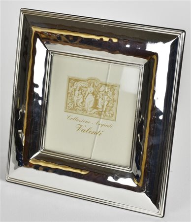 CORNICE IN ARGENTO di forma quadrata, cm 21,5x21,5 Vetro rotto e graffi lungo...