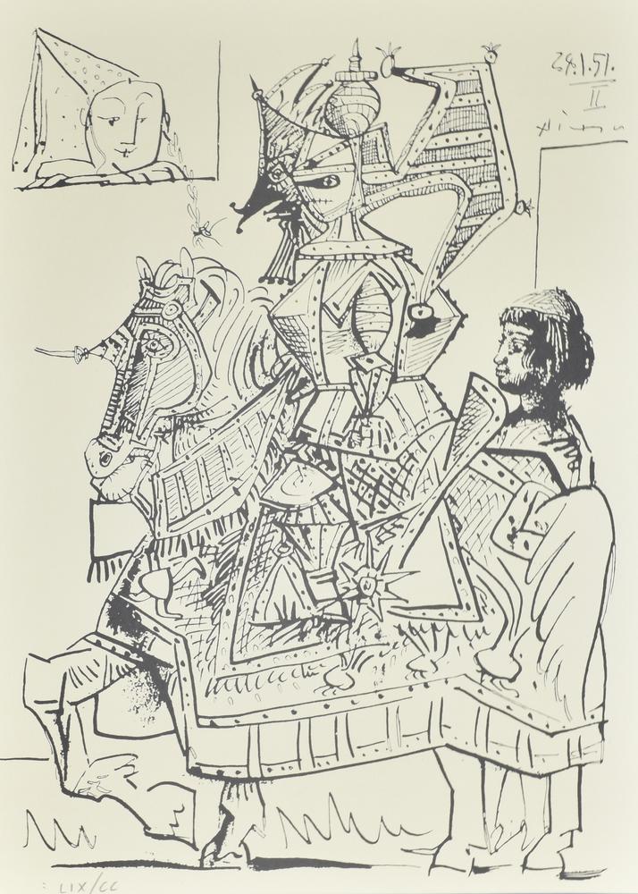 Pablo Picasso CAVALIERE E PAGGIO, 1951 litografia su carta, cm 48x34...