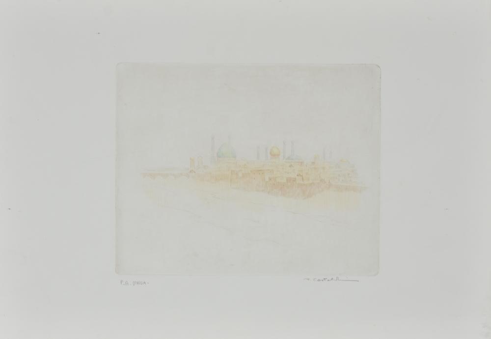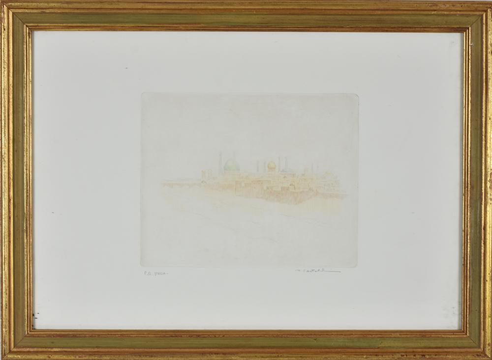 P. Castaldi CITTA' ORIENTALE incisione su carta, cm 35x50 (lastra cm 20x25)...