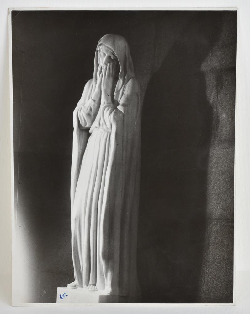 FOTOGRAFIA in bianco e nero raffigurante scultura in marmo della Madonna...