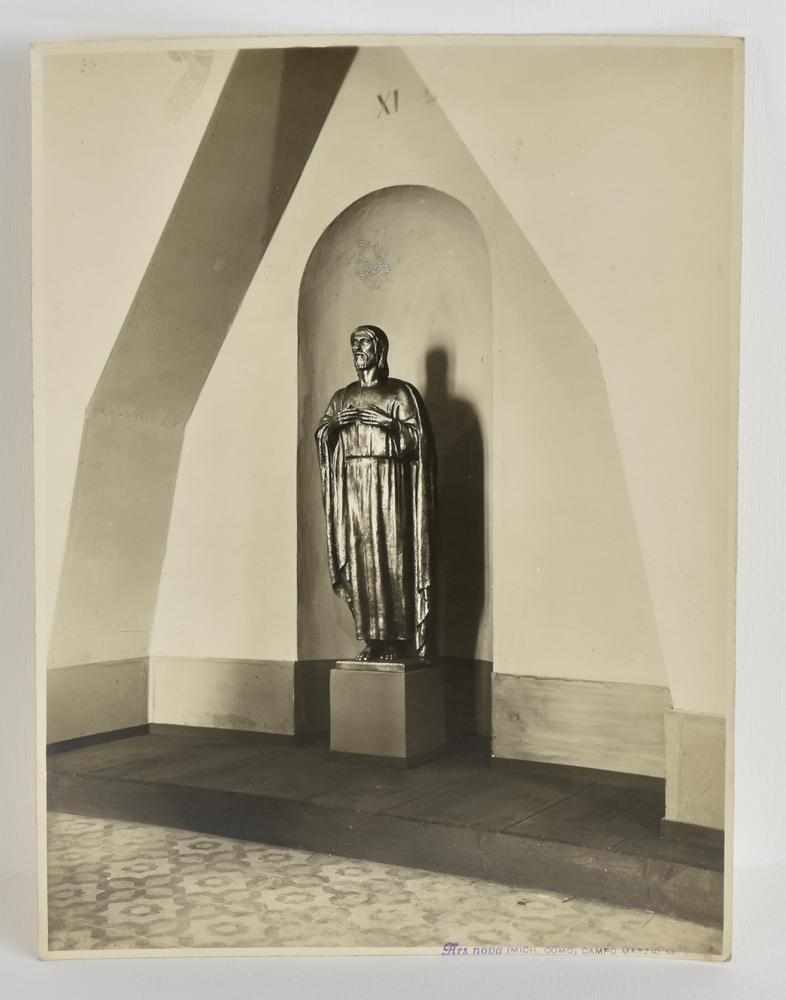 FOTOGRAFIA in bianco e nero raffigurante scultura in bronzo di Cristo, cm 23x17