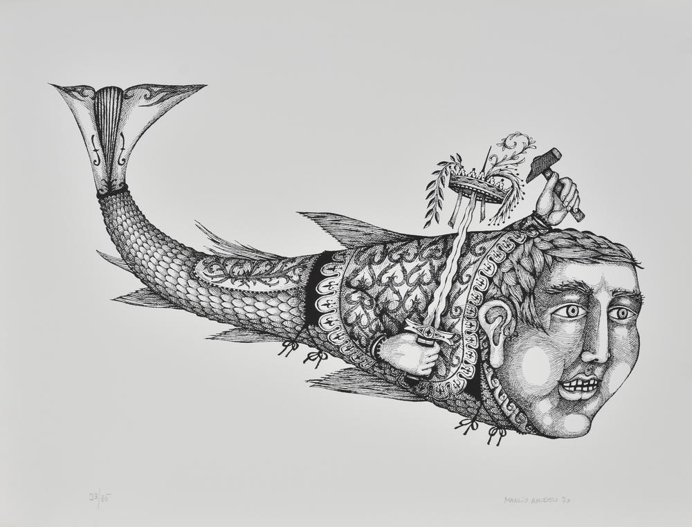 Manlio Amodeo PESCE REALE litografia su carta, cm 50x65 esemplare 23 su 35...