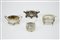 Quattro saliere in argento, due ovali con manici e due traforate su piedini...
