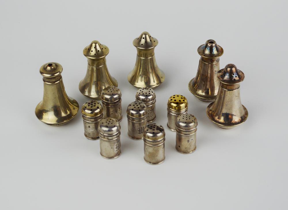 Otto saliere cilindriche individuali in argento. g 64 Cinque saliere in...