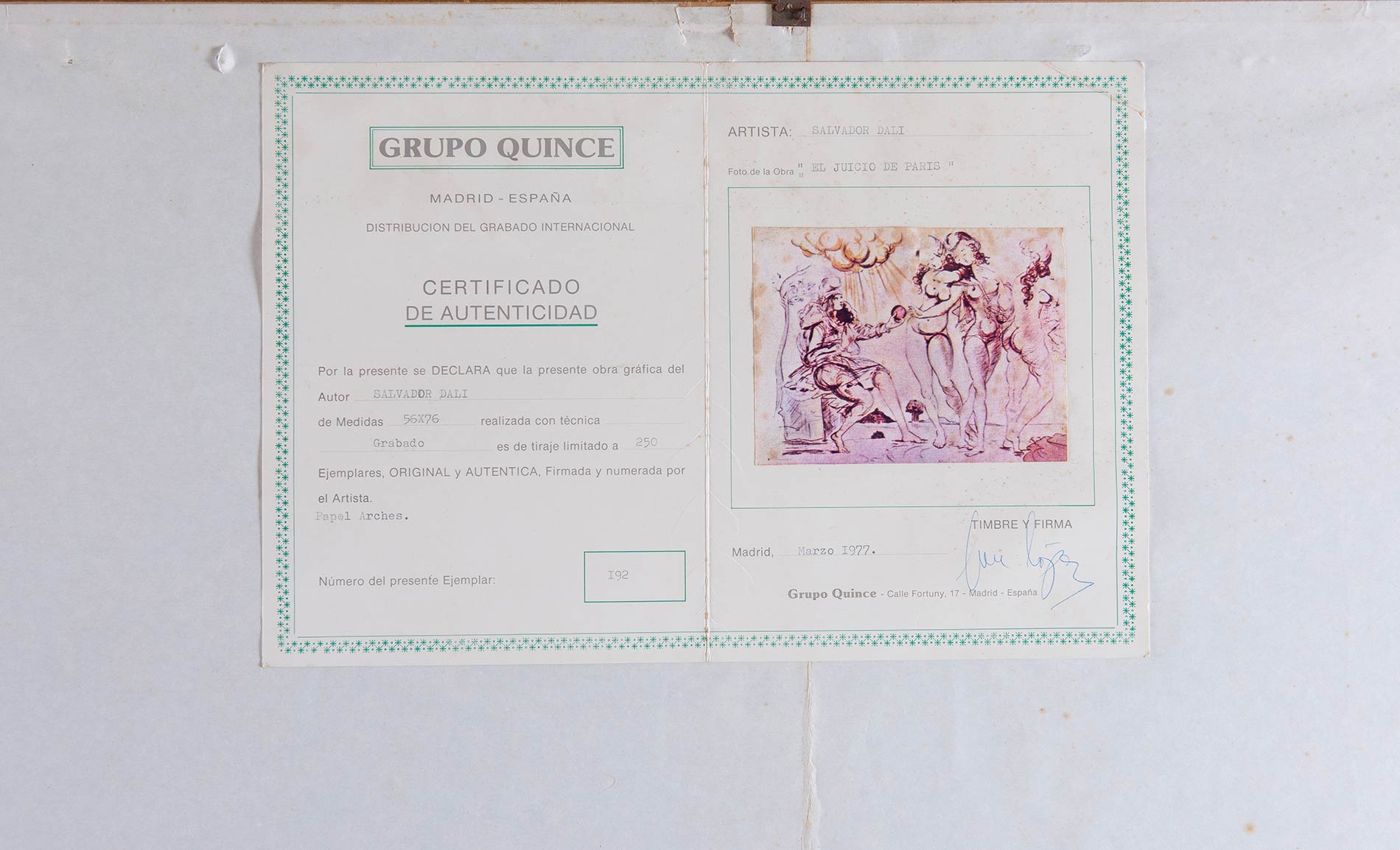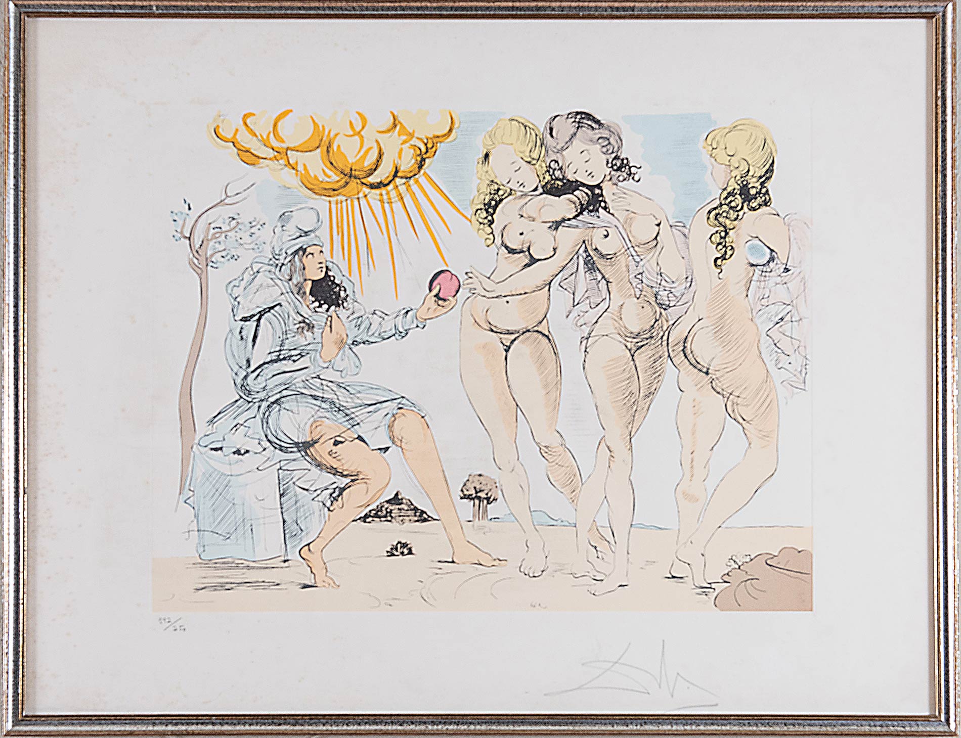 SALVADOR DALI' (Figueres 1904 - Figueres, 1989). 'Il giudizio di Paride'. Litografia acquatinta su carta Harches. H. Cm 56x76. Opera firmata in basso a destra 'Dalì'. Numeri di tiratura in basso a sinistra 192/250. L'opera reca timbro in basso a sinistra.
