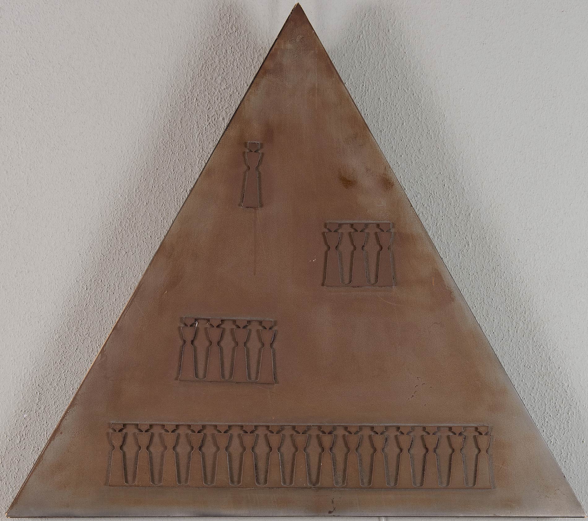 RAIMONDO RIMONDI (San Pietro in Casale 1922 - Bologna 2007). 'Triangolo'. Bassorilievo in bronzo su legno. H. Cm 63,5x72,5x1,5.