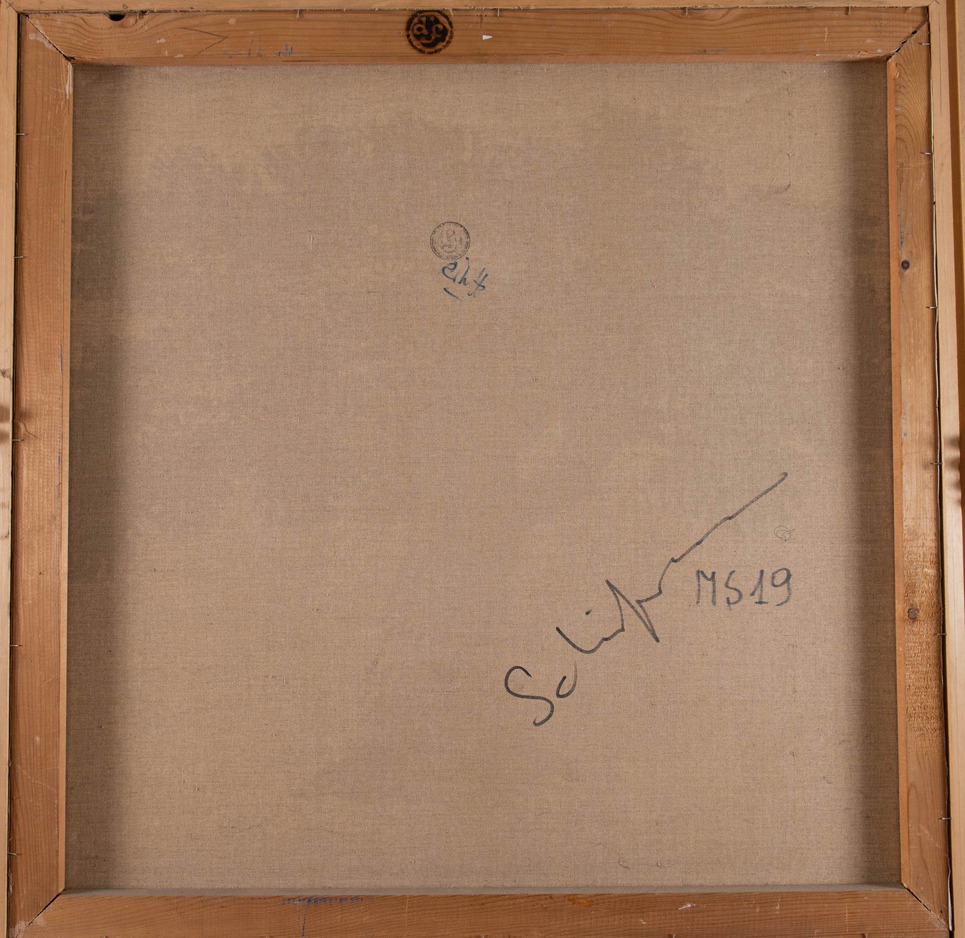 MARIO SCHIFANO (Homs 1934 - Roma 1998). 'Albero della vita', anni '70. Monotipo su tela. H. Cm 100x100. Opera firmata al retro 'Schifano' con numerazione 'MS1'; al retro reca inoltre timbro a fuoco della Galleria 'De Foscherari, Bologna' e timbro 'De Foscherari' con firma 'Ribuffo'. Opera accompagnata da autentica su fotografia dell'artista con timbri 'Galleria De Foscherari, Bologna'.