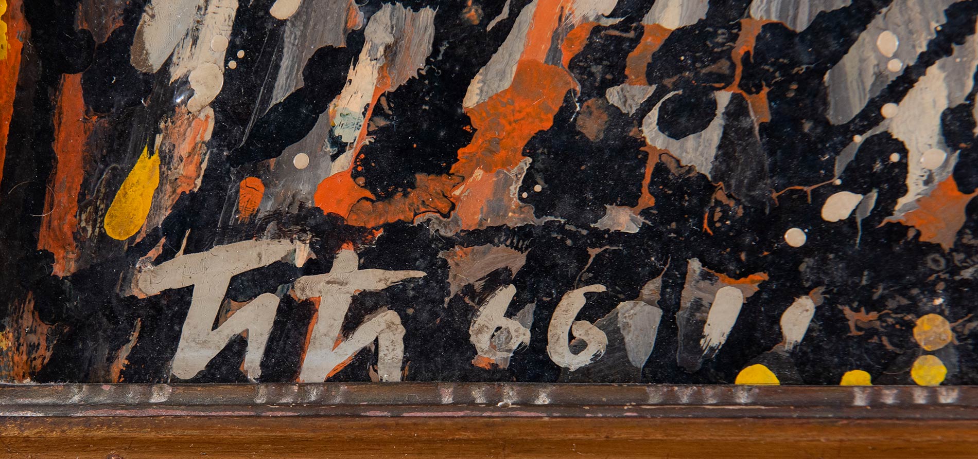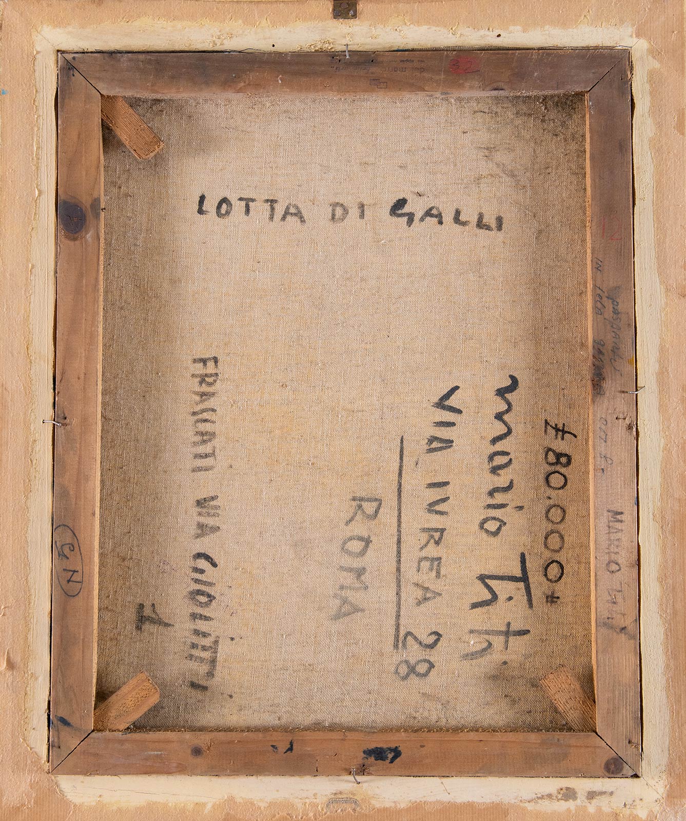 MARIO TITI (Frascati 1921 - Frascati 1982). 'Lotta di galli', 1966. Olio su tela. H. Cm 50x40. Opera firmata e datata in basso a sinistra 'Titi 66'. Al retro opera intitolata e firmata ''Lotta di Galli', Mario Titi'.