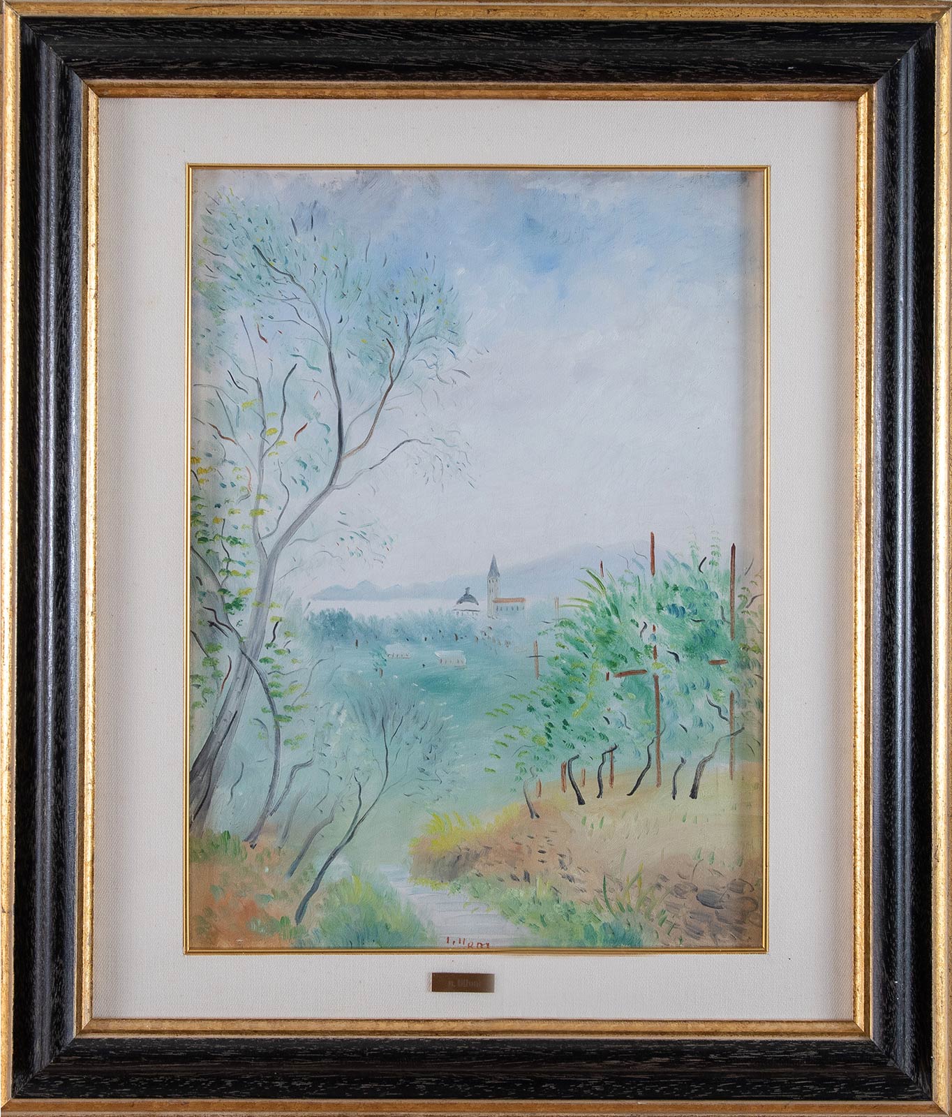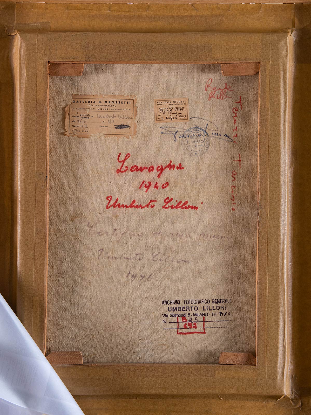 UMBERTO LILLONI (Milano 1898 - Milano 1980). 'Lavagna', 1940. Olio su tela. H. Cm 50x37,5. Opera firmata in basso al centro 'Lillloni'. Al retro reca etichetta 'Galleria Micheli, Lecco' ed etichetta 'Galleria B. Grossetti dell'Annunciata, Milano'. Reca inoltre timbro a secco 'Galleria F. Russo (Roma)' e timbro 'Archivio fotografico generale Umberto Lillloni'. Al retro opera intitolata, datata e firmata 'Lavagna 1940, Umberto Lillloni'. Al retro reca scritta 'Certifico di mia mano, Umberto Lillloni 1976'. Opera accompagnata da autentica su foto con timbro a secco 'Archivio fotografico generale Umberto Lilloni, Milano. Opera pubblicata nel 'Catalogo ragionato dei dipinti e dei disegni di Umberto Lilloni, Tomo secondo', tavola numero 355. Esposizioni: 'Mostra personale Galleria Micheli, Lecco; 2 luglio 1943'.
