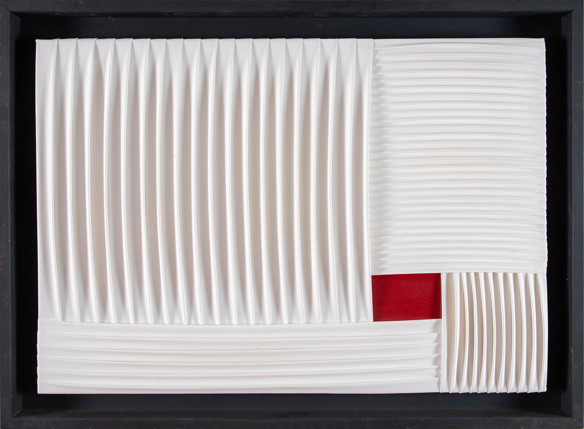 NANDO STEVOLI (Ferrara 1953). 'Pleating', 2016. Plissettatura su tavola con calce e cemento. H. Cm 69x94. Opera intitolata, firmata e datata al retro ''Pleating' Nando Stevoli 2016'. Opera pubblicata in brochure 'Nando Stevoli / Idea Art Gallery'. Opera autenticata su fotografia dall'artista.