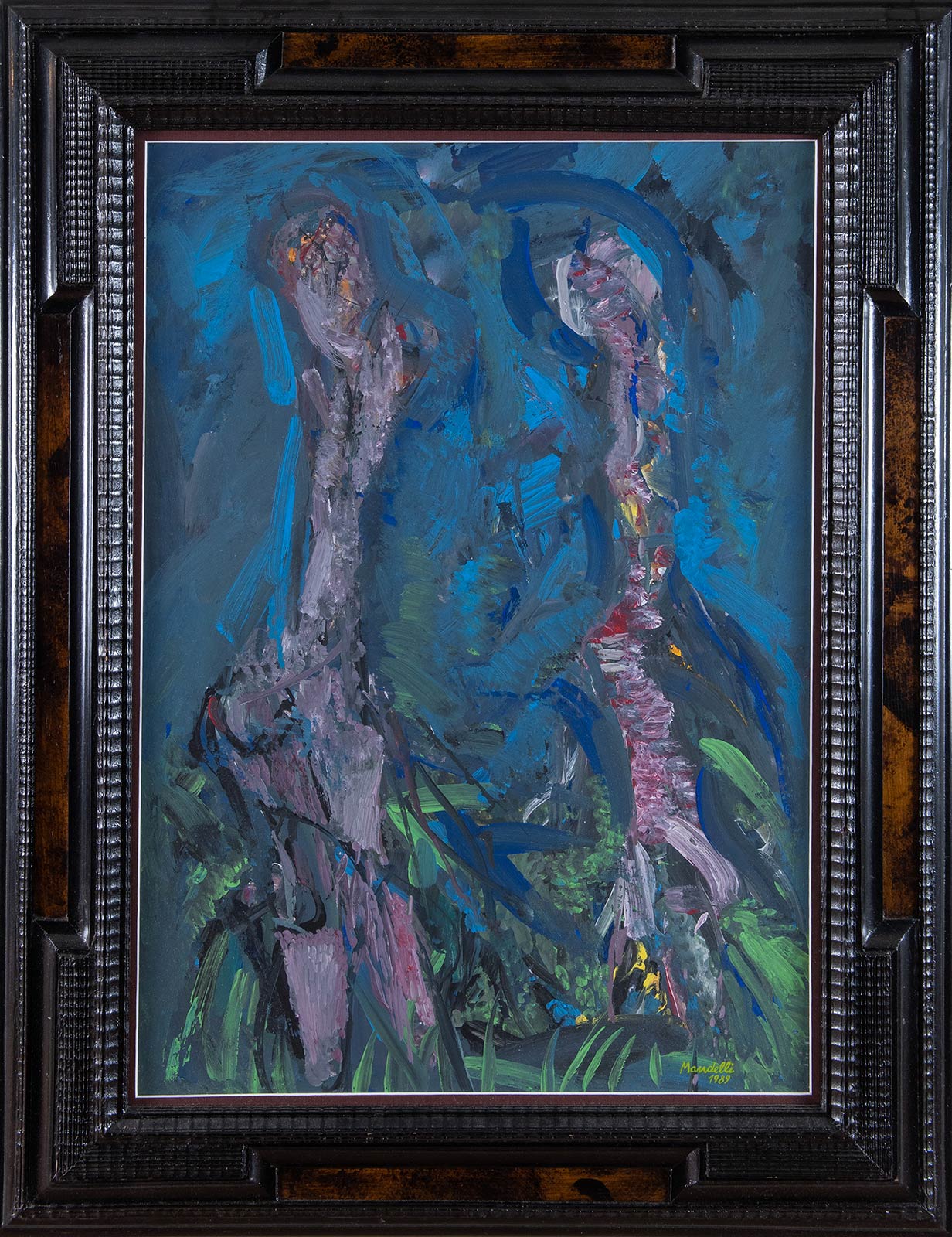 POMPILIO MANDELLI (Luzzara 1912 - Bologna 2006). 'Figure', 1989. Acrilico su cartoncino. H. Cm 67x48. Opera firmata e datata in basso a destra 'Mandelli 1989'.