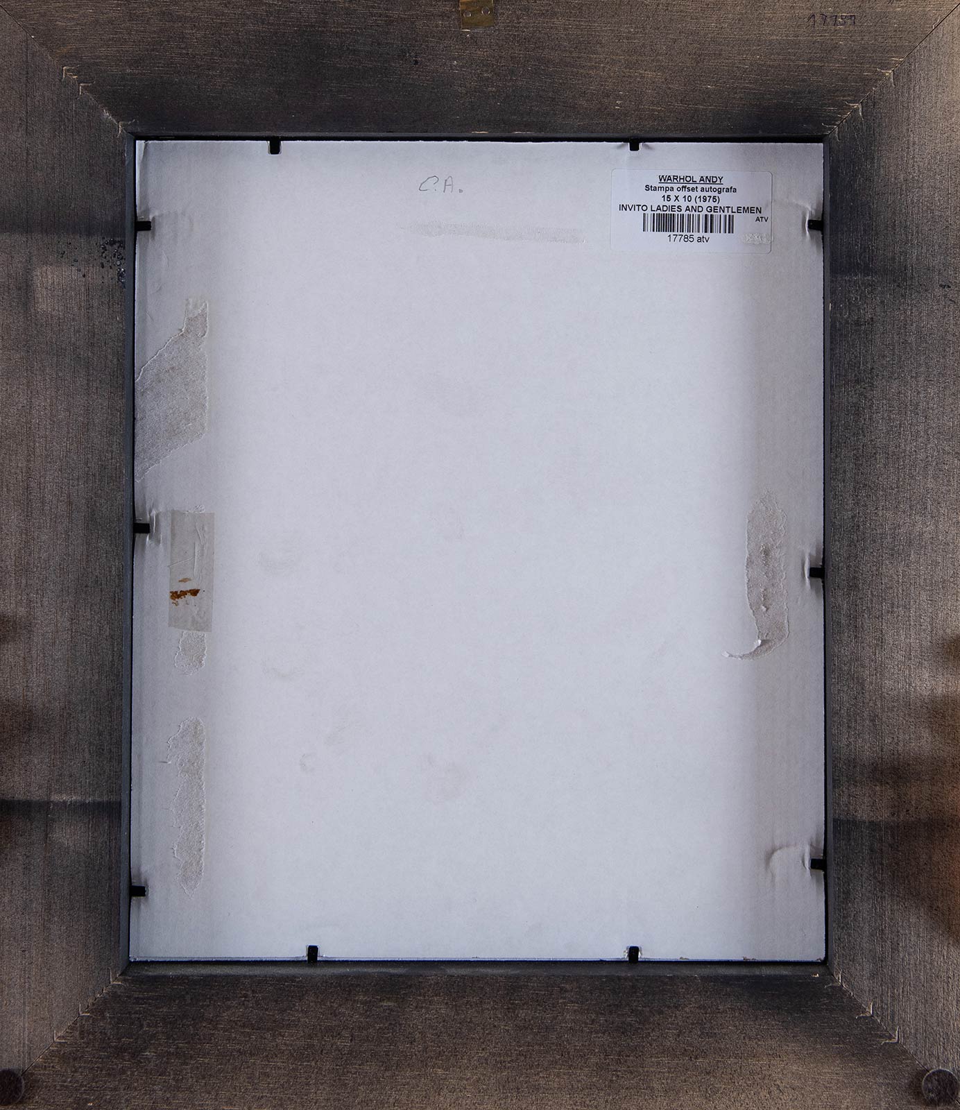 ANDY WARHOL (Pittsburgh 1928 - New York 1987). 'Invito Ladies and Gentlemen', 1975. Stampa offset autografa. H. Cm 15x10. Opera accompagnata da certificato di autenticità rilasciato da 'Artetivù'.