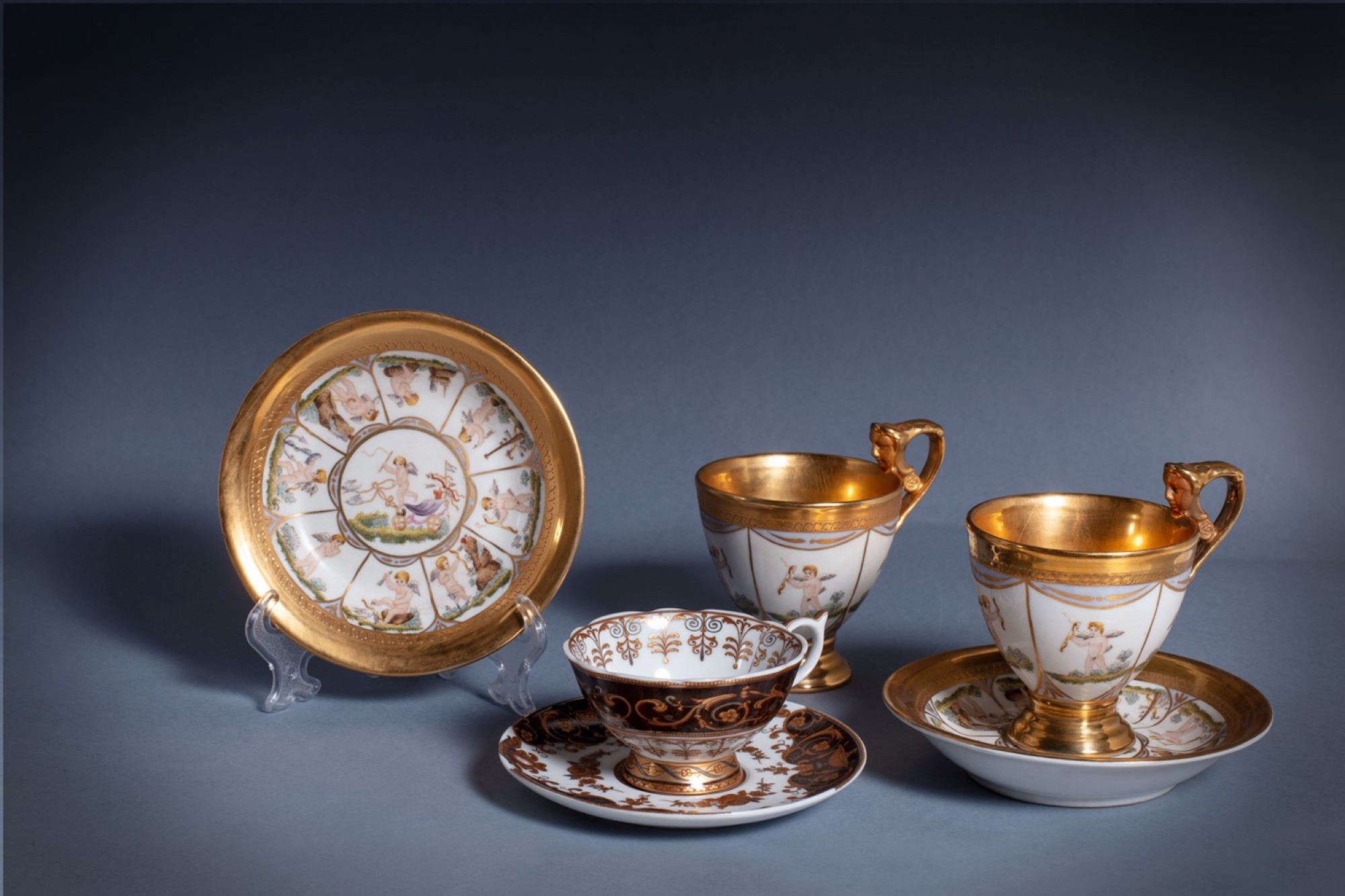 Lotto 8 | Tre tazzine con piattino in porcellana, secolo XX