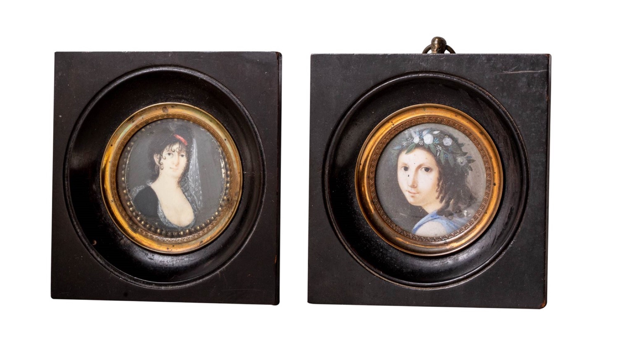 Lotto 15 | Scuola italiana, secolo XIX - Due miniature con figure femminili: la prima con ghirlanda di fiori; la seconda con nastro rosso e velo
