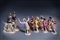 Orchestra di scimmie composta da sette pezzi; e coppia di scimmie su cani, in porcellana policroma, secolo XX