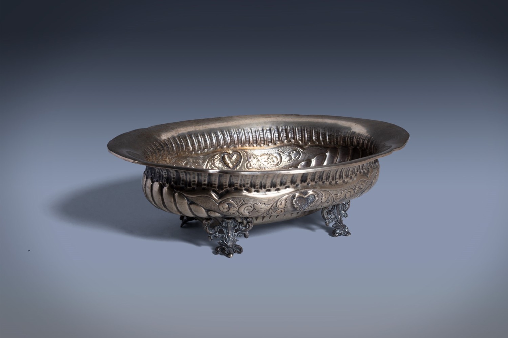 Vaso in argento 800, con volute e baccellature, secolo XX