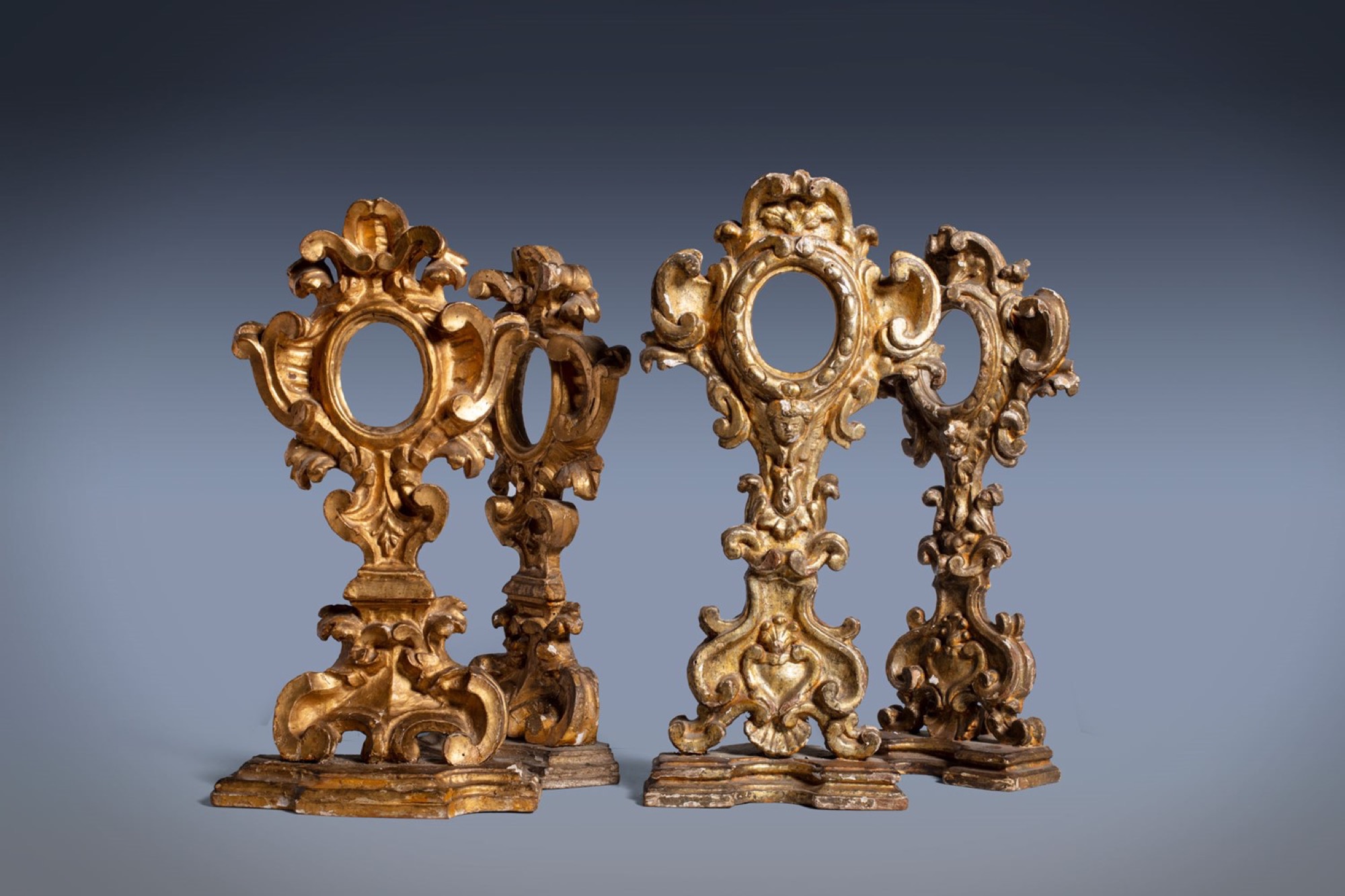 Due coppie di porta reliquie in legno dorato e a mecca, Roma secolo XVIII