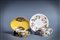 la più grande con decoro floreale a rilievo; la più piccola a fondo giallo con riserve raffiguranti vedutela più grande con decoro floreale a rilievo; la più piccola a fondo giallo con riserve raffiguranti vedute