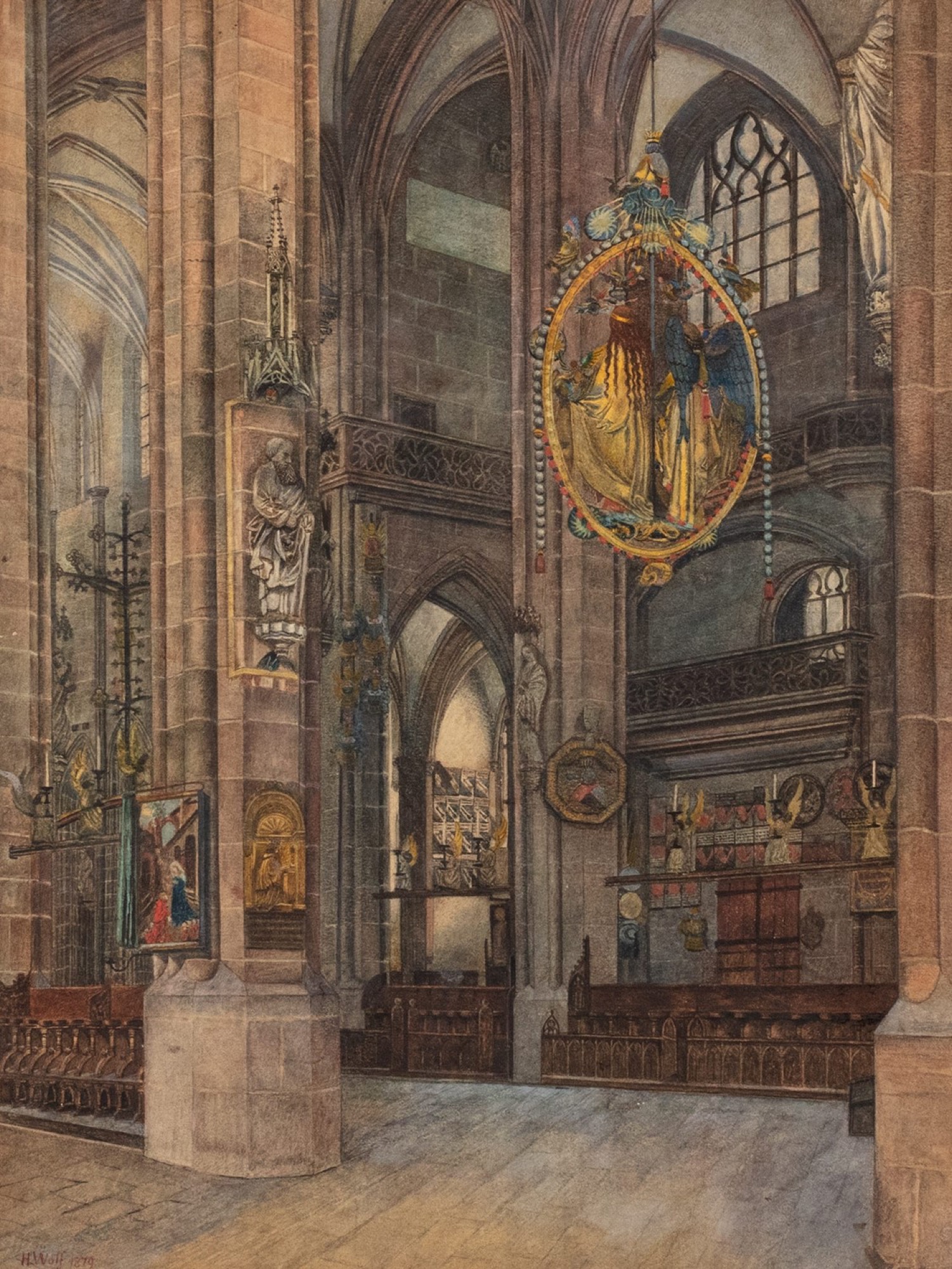 Scuola tedesca, secolo XIX - Interno di chiesa gotica, 1879