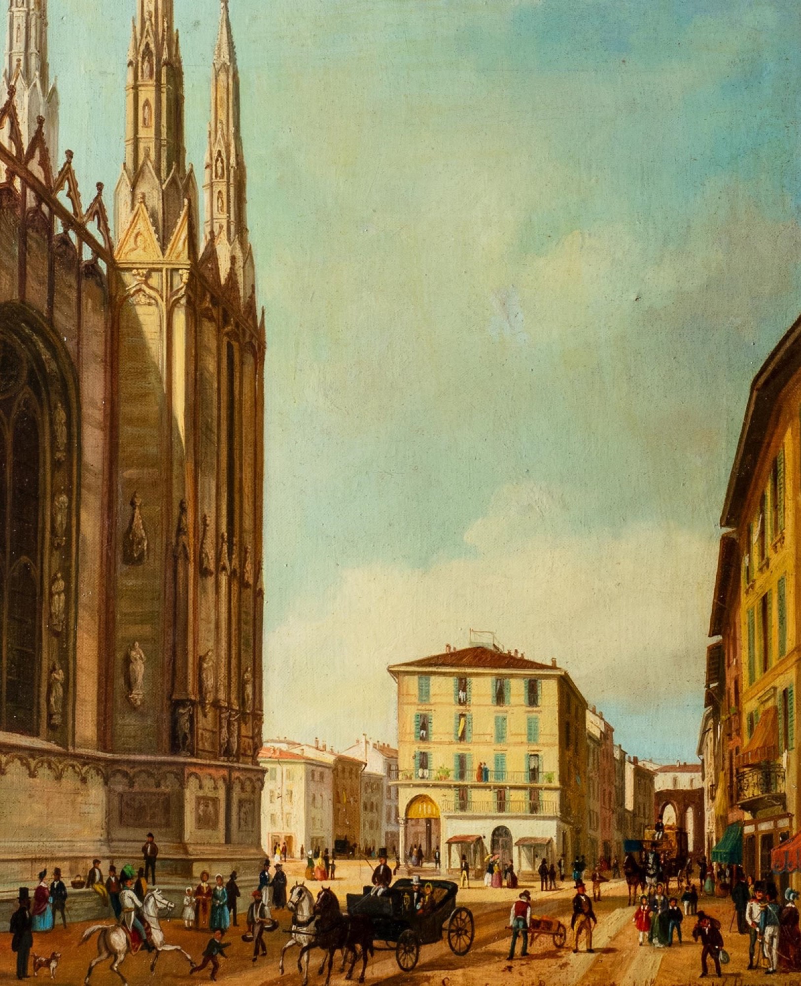 iscrizione in basso a destra: La contrada di [...] vista dalla corsia del Duomo 1842